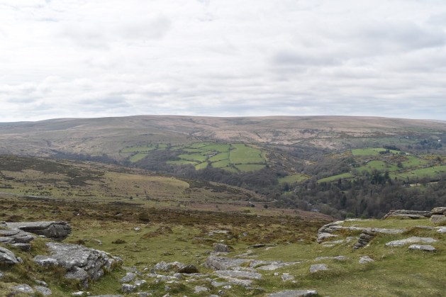 Views to Bellever Tor from Yar Tor plus the lower outcrops as they tumble down the hill