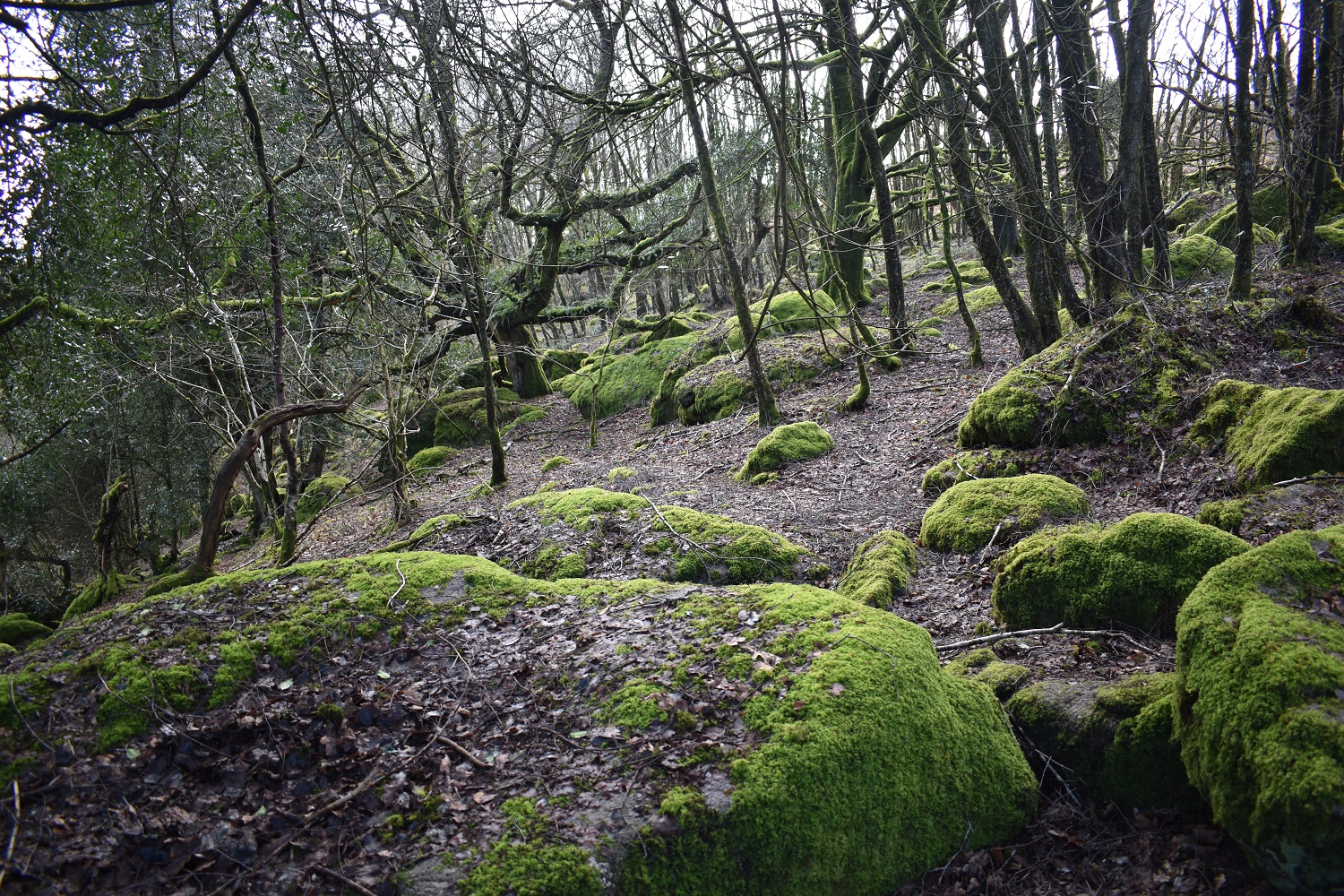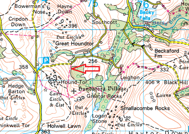 A great name for a tor, which probably originates from the name of the Piphole Linhay barn below this tor. Its a shame that the outcrop itself doesn’t match up to the name, there are a couple of reasonably sized boulders and a fair bit of moss covered clitter, but that’s about it I’m afraid. The good news is this outcrop sits very near to Hound Tor, on its north eastern slope just inside the woodland. And with Greator Rocks a short distance away, decent outcrops aren’t far to walk. With this outcrop within the woodland there are no views from this one, the same as nearby Plat Tor, also no military areas near here.