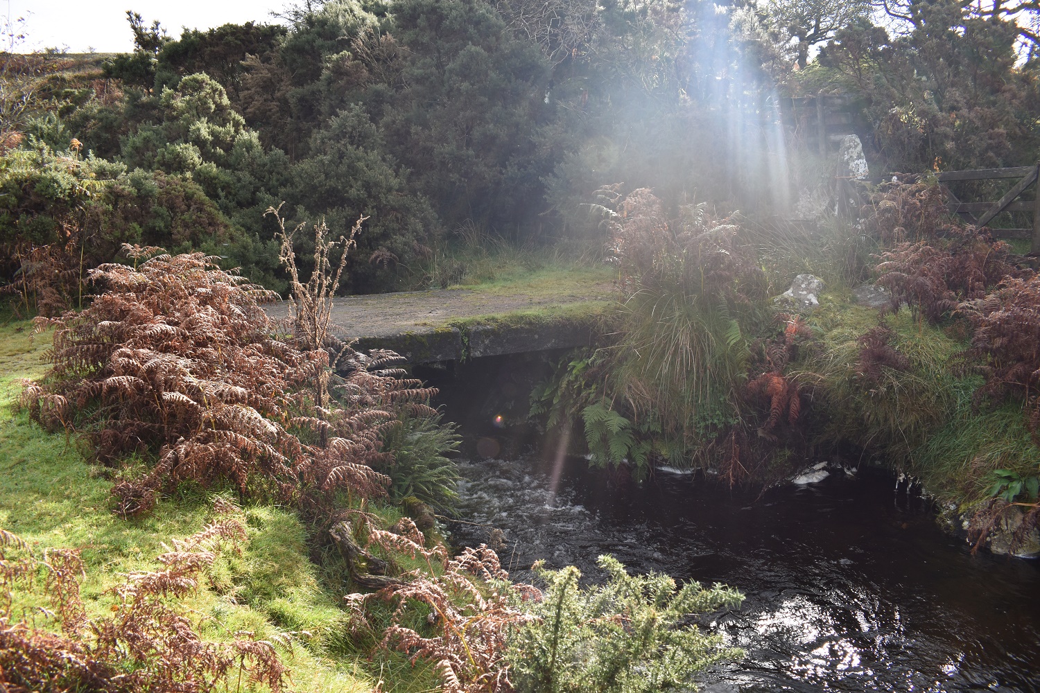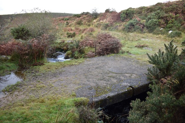 This is a small concrete slab bridge across the Doetor Brook between Doe Tor and Brat Tor. A well used path crosses the brook at this point which resulted in the need for a bridge. This bridge is hidden in a fair bit of vegetation with gorse all around. You will use this bridge if you head to Doe Tor from Lyd steps.