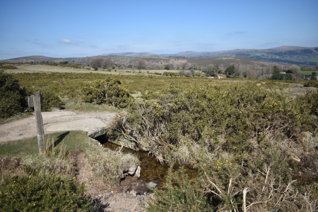 This is a little clapper bridge over the Holne Moor Leat as it winds its way towards Michelcombe. The leat itself runs to the southeast of Venford reservoir, crossing the road to Holne before dropping down the hill to Michelcombe and then the Holy Brook. This is the main bridge over the leat and brings the path down from the Holne Ridge and the Sandy Way towards the road to Holne. This is a small stone bridge of a few single spans of granite across the leat.