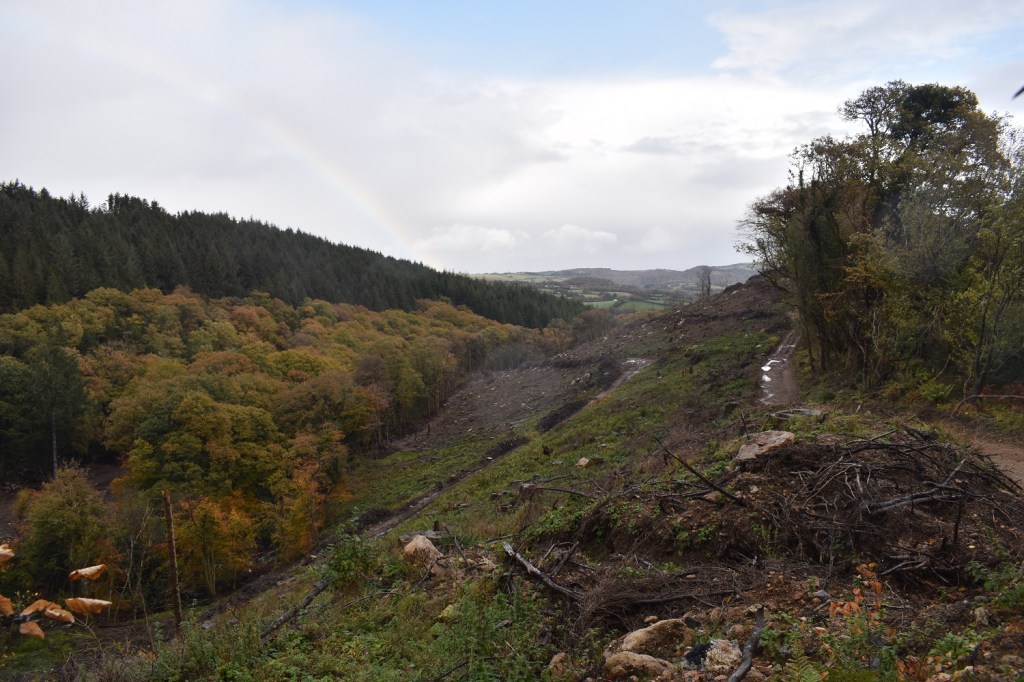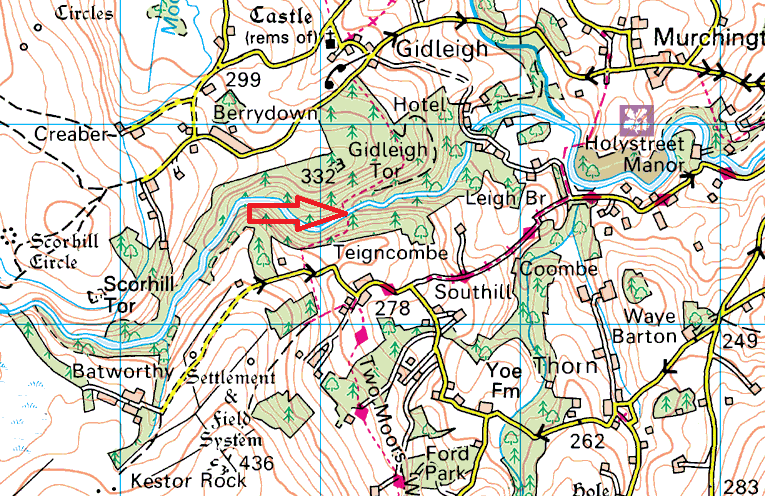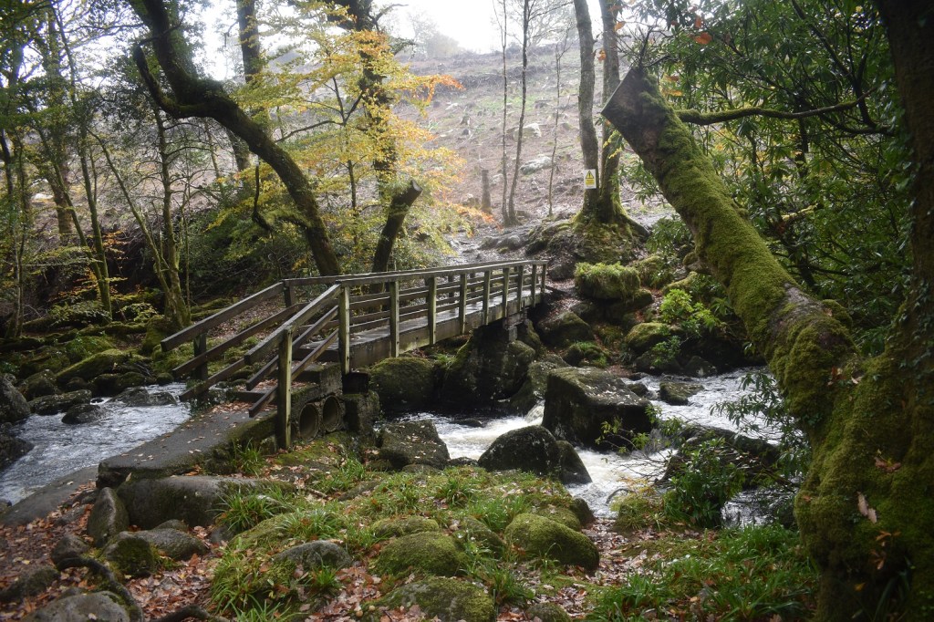 This is a small footbridge which crosses the North Teign River below Gidleigh Tor. The wooded valley in which this bridge sits is slowly being opened as tree felling opens the area, completely open on the southern side of the river now. This is just a simple wooden bridge which takes a good path across the river, the path runs from Gidleigh village across towards Kes Tor.