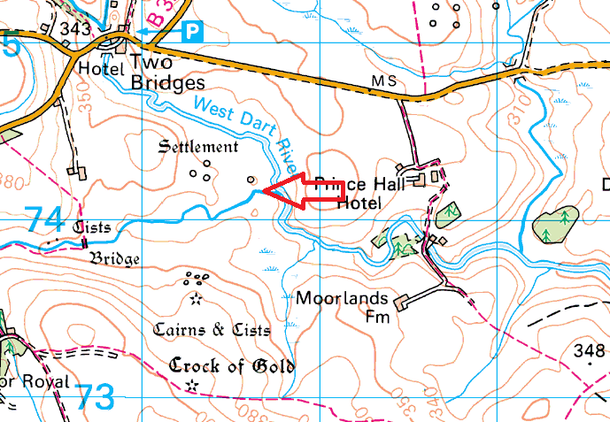 This is a small wooden bridge over the Blackbrook in between Prince Hall Rocks, northern and southern outcrops. Not to be mistaken with Prince Hall Bridge which is a fine stone bridge over the West Dart to the east of this one. This bridge links the two outcrops of Prince Hall Rocks and allows for a good round walk, with the other bridge under Round Hill Tor allowing for two crossing points.