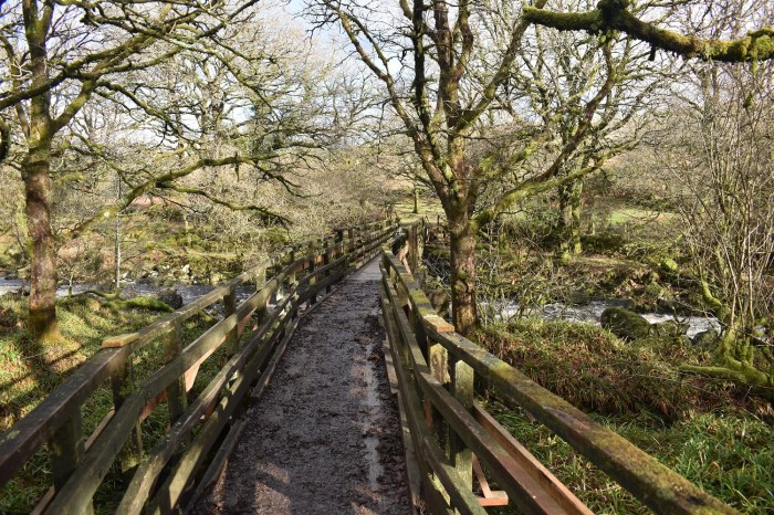 This is a clever double bridge over the River Tavy just downstream from the entrance to Tavy Cleave and upstream from the stepping stone crossing by Coffin Wood. This is a wooden bridge which spans the Tavy at the point where it splits, with an island in the middle, hence the two parts of the bridge. The bridge also sits not too far from Standon Farm hence its name. If there has been heavy rain or it is winter this is a sure fire way of crossing the Tavy as the stepping stones to the south will most certainly be under water.