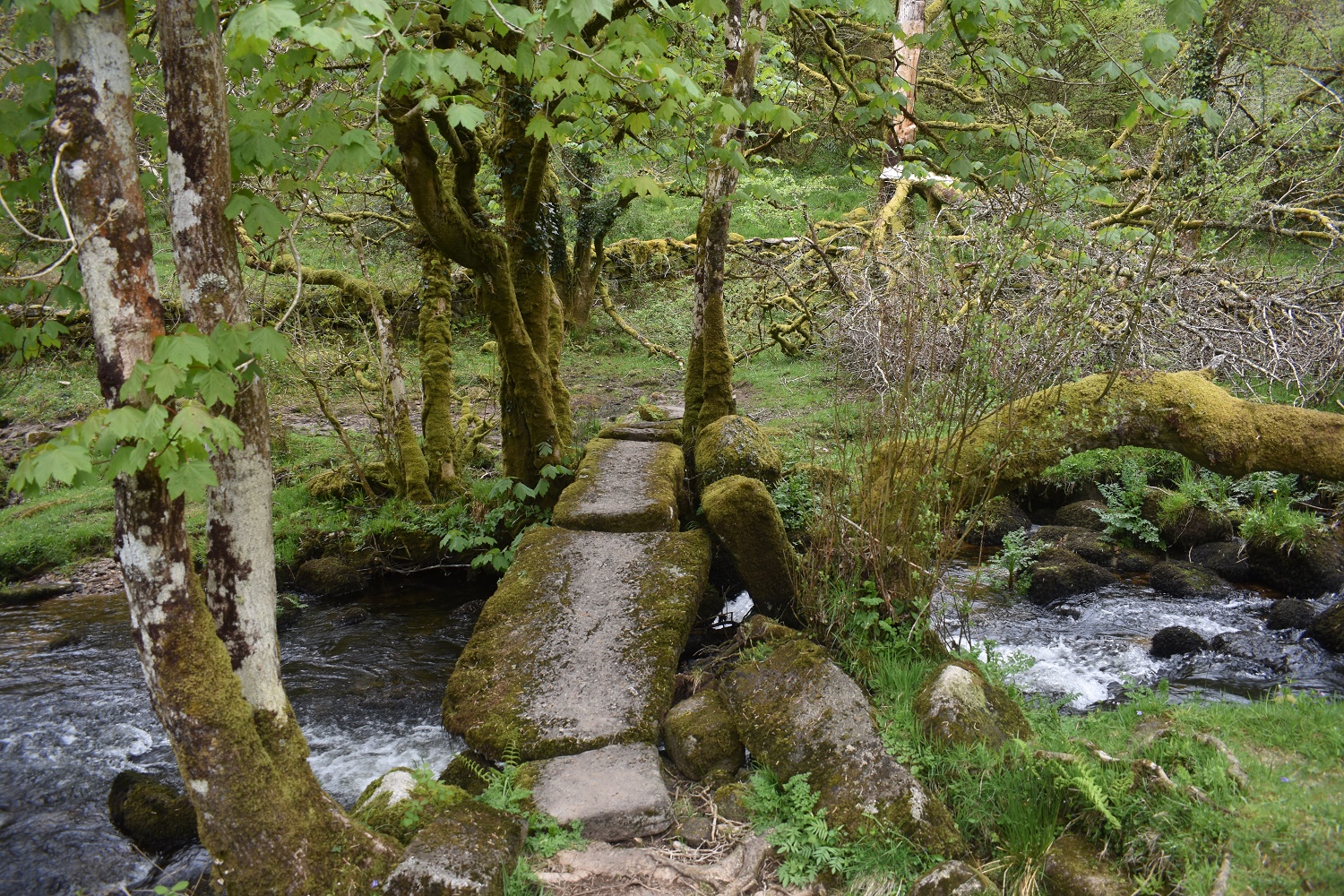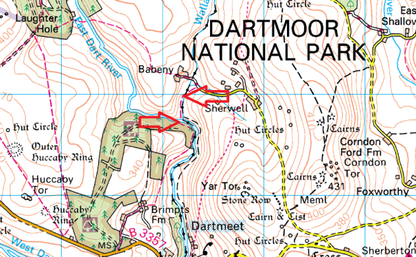 Now there are two Walla Brook’s on Dartmoor, one on the north moor near to Scorhill and this one just north of Dartmeet in the centre of the moor. This bridge is a 100 metres or so north of where the Walla Brook joins the East Dart river. Where the brook joins the Dart is also the point where the stepping stones lie. Now these stones cross the East Dart, so before you all write in and tell me I’ve named these wrongly, I know, I just don’t want to create another page for two crossings that sit so close to each other. The stepping stones go by the local name of Babeny Steps and provide a nice way to cross the East Dart and complete a nice circular walk from Dartmeet and back via Brimpts Farm.