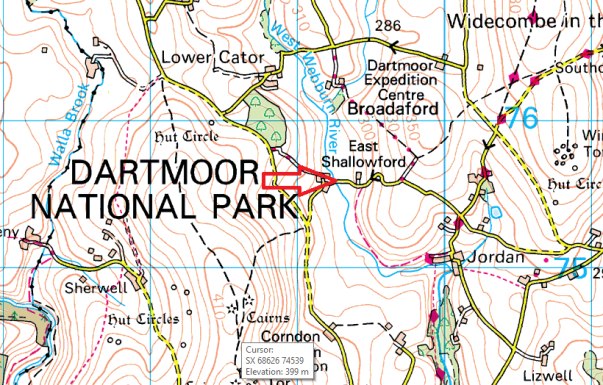 This is a road bridge over the West Webburn River between east and west Shallowford. The bridge itself is fairly standard, with three gaps for the river to pass through, which at this stage is fairly small. Just after this bridge, heading east, is a nice path which handrails the river to Jordan.