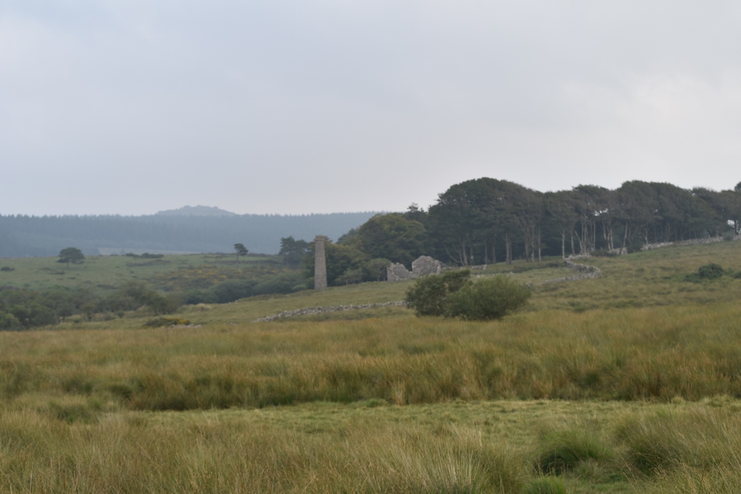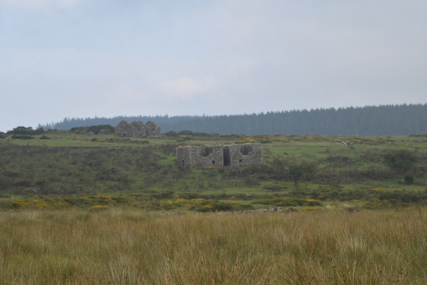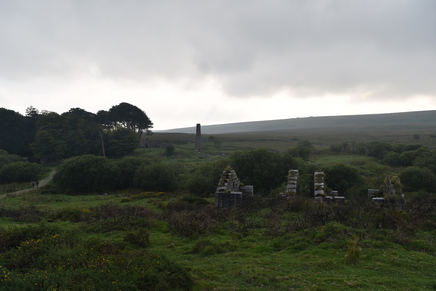 Near to the village of Postbridge in the centre of Dartmoor lies Powdermills. This was a factory built in 1844 for making gunpowder. Gunpowder was needed for the tin mines and granite quarries then in operation on the moor. The buildings were widely spaced from one another for safety and a leat provided the power to drive the tools.There are plenty of remains of this factory still visible, two chimneys still stand and two incorporating mill buildings also survive: These were built with thick walls but flimsy roofs so that in the event of an explosion, the force of the blast would be directed safely upwards. The ruins of a number of ancillary buildings also survive. Powdermills is now a pottery place, with a bunkhouse and tea room, far removed from its original purpose.