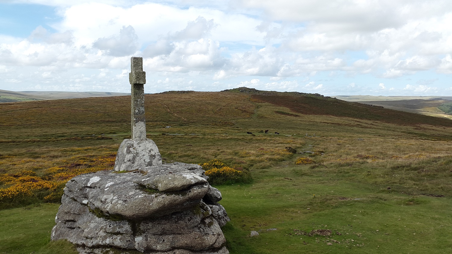 The Cave Penney Memorial or Sherwell Cross stands on a granite rock between Yar Tor and Corndon Tor. It is a memorial to a young World War 1 soldier who lived in the local area. He died in battle in Palestine in 1918 and is commemorated by this impressive well-preserved cross. It sits in stunning surroundings with great views to the south to Sharp Tor, across to Yar Tor and north towards Postbridge.