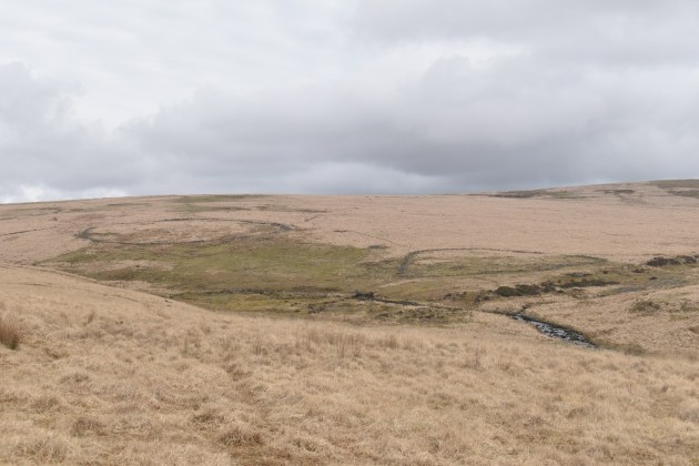 And looking the other way towards Stingers Hill, the Staldon Stone Row is on the other bank over the River Erme