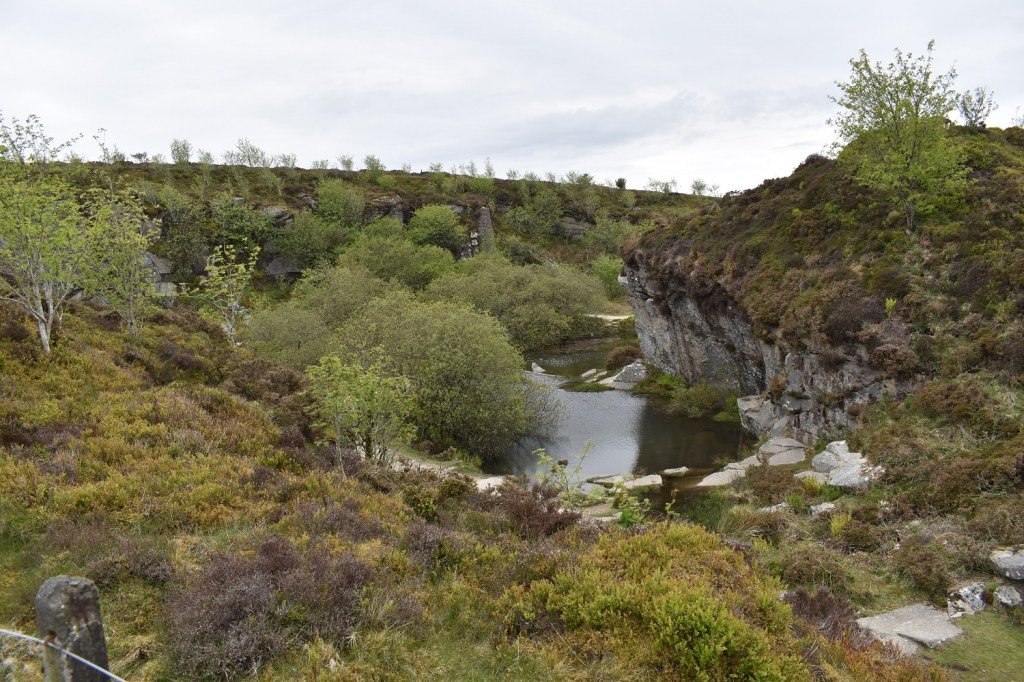 This quarry sits a few hundred metres downhill and north east from Haytor itself and can easily be found and linked in with a walk around this area. The Haytor tramway (Templer Way), now a path comes into the quarry from the north eastern side and would have been used to transport the granite out of the quarry. The quarry was worked in the late 18th century through to around 1860 and moved along the horse drawn Templer Way to Stover Canal and on to Teignmouth. This tramway took the stone from 4 other quarries in the area as well, including Holwell Quarry, to building projects such as London Bridge, British Museum, National Gallery and Covent Garden market. The quarry now is slowly being taken back by wildlife and the moor. Trees and shrubs are growing and the pond at the bottom now provides a lovely area which is away from the busy Haytor up the hill.