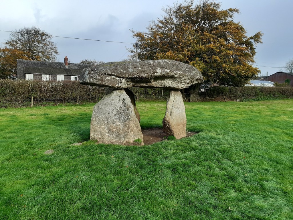 This is a neolithic dolmen not too far from the A382 and to the north of Chagford. This is a classic burial chamber with three megaliths (standing stones) supporting the capping stone. The burial chamber collapsed in1862 but was re-erected in the same year. The story of the name goes that three spinsters (not as in a single woman but as in the spinster trade), walked along the road and saw the tomb had fallen. That morning they re-erected the fallen tomb, hence the name.