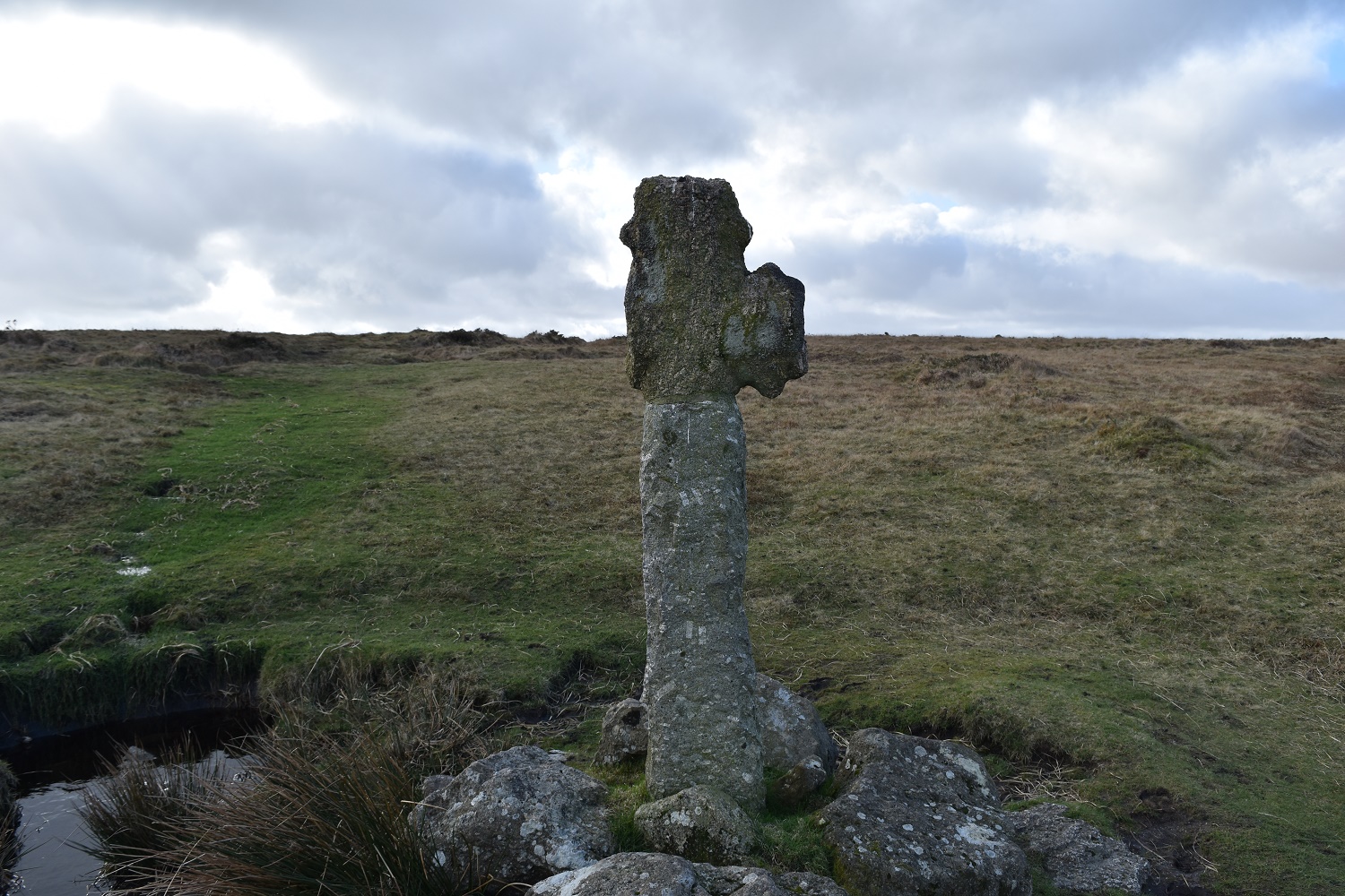 This cross formed part of the monks route from Plympton priory to Buckfast Abbey and stands on the part of the path from Owley Moor gate to Harford. This cross has lost one of its arms and the shaft is a replacement one.