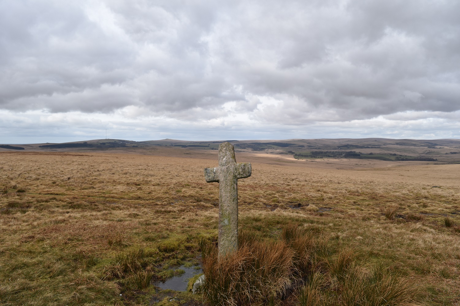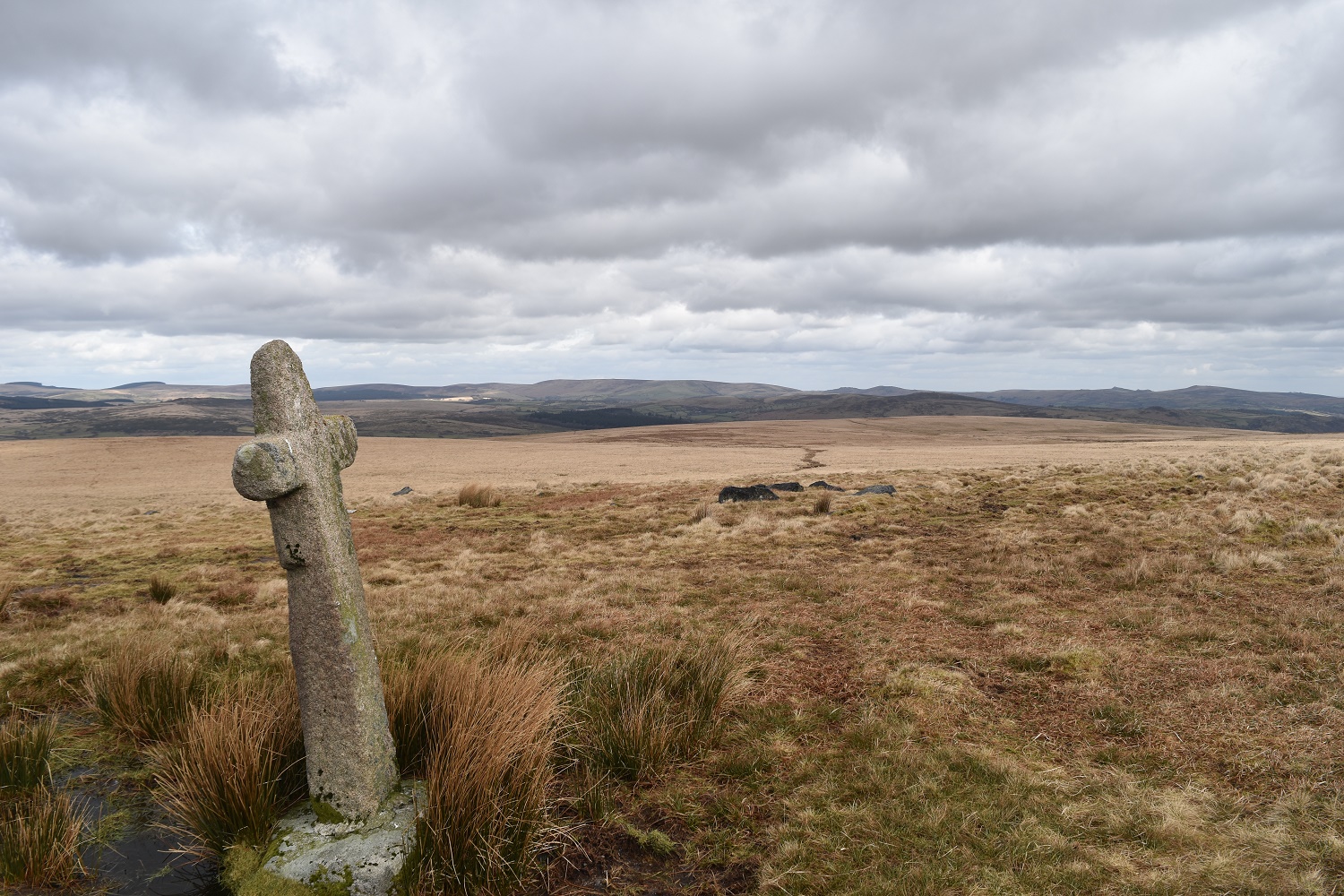 These aren’t posts, but crosses sitting on the side of Ter Hill on the old Monks Path between Tavistock and Buckfast. They sit around 100 yards apart and one can just be seen from the other. They offer a great view into the centre of Dartmoor, to the Beardown Tors and round to Fernworthy. One cross, the westerly one, is a replica of the original which sits in Princetown in the Moorland visitor centre. These crosses sit a little further up the hill from Mount Misery Cross.