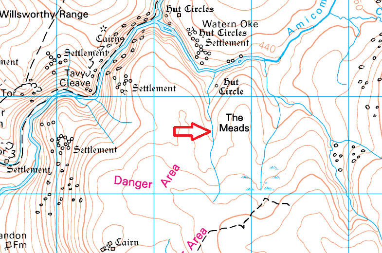 This pole is unique on Dartmoor, it sits right in the centre of 3 Dartmoor firing ranges and a step one way or the other will take you into a range. The three ranges Merrivale, Okehampton and Willsworthy all meet at this point and only a thin sliver of land, between the Merrivale and Willsworthy ranges, would allow you reach this point if live firing was taking place in all the ranges. This is a remote spot sitting in an area called The Meads on the OS map, to the north east of Standon Hill. To get here you will travel over some rough ground but once here you will find a fine view to the north.
