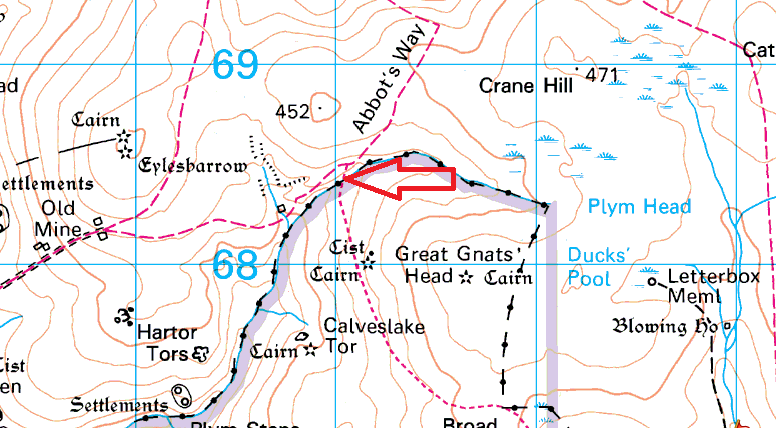 This is a ford of the River Plym not too far from the river source at Plym Head. The ford itself sits on the Abbot’s Way, an old path, in this case, linking the towns and churches of Tavistock to Buckfastleigh. The crossing itself isn’t too bad, in summer when water levels are very low then its possible to use the stones to cross. At other times when rain has fallen that isn’t possible but head up or downstream for 10 metres and you’ll find that the river is around a metre wide so can be jumped.