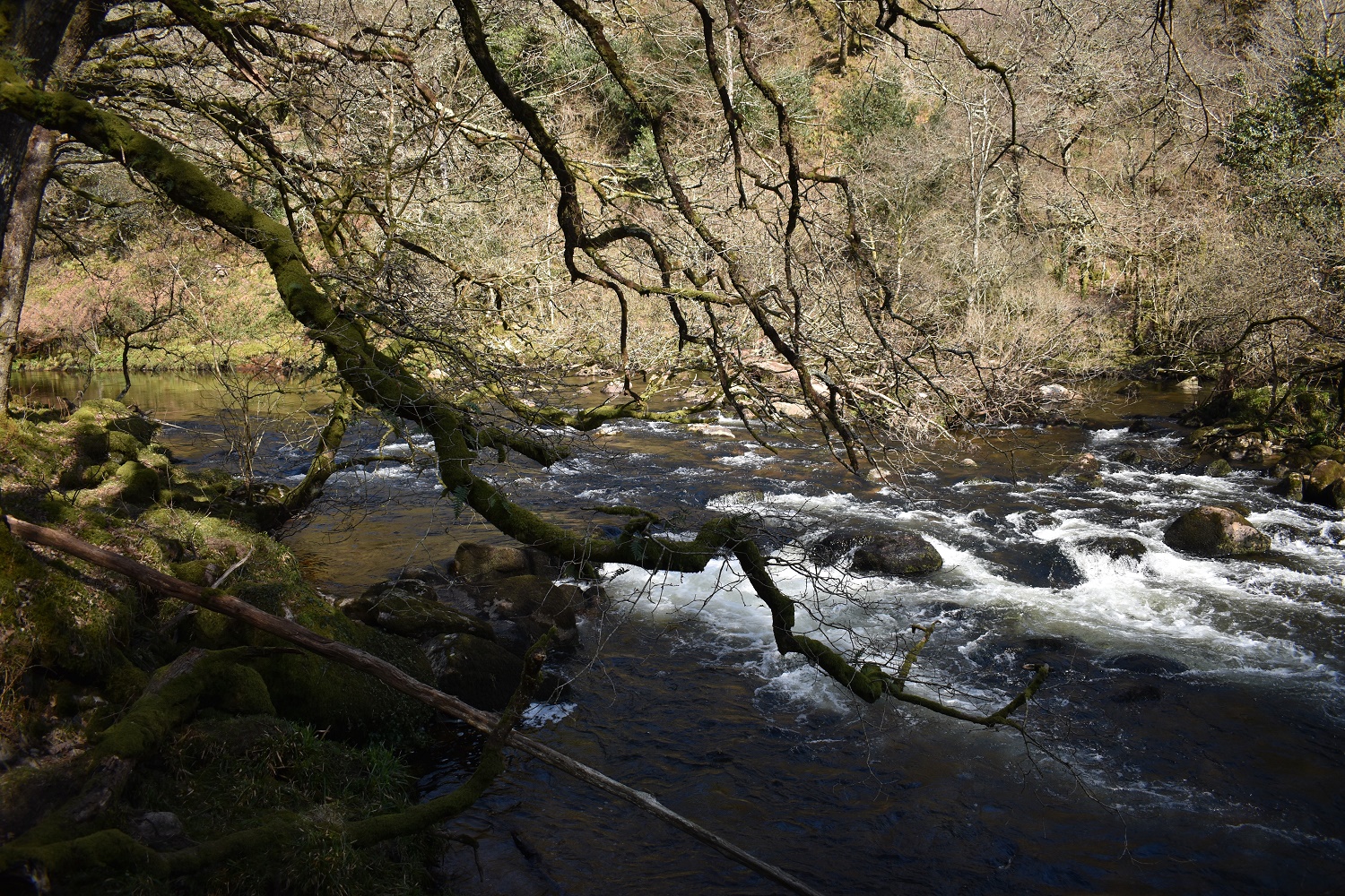 This has to be the best wild swimming spot on Dartmoor along with Shilley Pool. Don’t get these two spots mixed up, Shilley Pool is up on the north moor near to Throwleigh and this spot is on the Dart River near to New Bridge. A series of cascades feeds into this spot, which becomes a deep pool about 60 metres in length before gently moving off over some smaller rocks towards New Bridge. The area is flanked by trees and has that hidden secluded feeling to it, however as with lots of these places, comes a descending crowd. It can get reasonably busy in the summer months, however a warm midweek May or September day should be fine. The water is as cold all year round, so it makes very little difference!