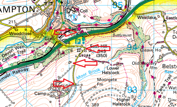 This section of parking spots centre around East Hill. These spots are reached before you get on to the moor proper and before you get to the Okehampton Camp. There are 4 areas here, one is a proper car park on the edge of Okehampton, the two others are roadside and the final one a rough car park by the road.