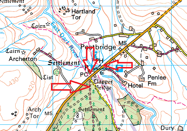 These are a few car parks located around the Postbridge Clapper Bridge. There are 3 spots, the roadside parking opposite the East Dart pub, the official Dartmoor car park and the Bellever forest car park. In total you’ll get 80 cars and a few coaches in all these 3. However the place is very popular, especially in summer with plenty of people coming to see the clapper bridge. The official car park has toilets and an information shop, this car park is now pay and display also. The pub here is also pretty good, serving decent food and some good ales.