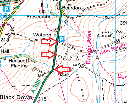 This is parking along the A386 between Mary Tavy (but after Wheal Betsy) and Lydford. There are a number of parking spots on the right hand side as you head north, two of which are gates for the firing range itself. The tracks from these parking areas give you easy access to White Hill and the firing range, however if the red flags are flying then no access is permitted. Obviously from these spots White Hill is an easy target, but you can go beyond into Dartmoor proper with Hare Tor, Sharp Tor and Tavy Cleave all possible. You can get around 8 or 10 cars in the northernmost car park, with around 1 or 2 cars possible in the other two.